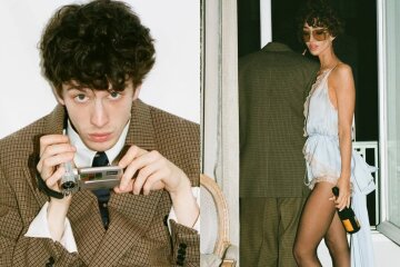 Mark Eidelstein and his girlfriend, Nadya Lee Cohen, attended the Saint Laurent men's show together in Paris. They kept their affections under wraps during the show, but afterward, they posed for a joint photo shoot in their hotel room.