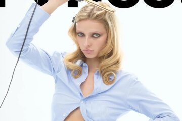 In the photo shoot, 21-year-old Apple Martin posed in a white bra from Cou Cou Intimates and shorts from Loro Piana. In one of the photos, she appeared in black underwear, while for other photos, the model was photographed in a denim shirt on her naked body and a vintage Burger King T-shirt - she completed the latter look with a plastic soda cup.