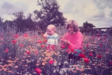 In honor of Mother's Day, Prince William posted a photo of his late mother on Instagram*, amid a escalating conflict with his brother, Prince Harry. The photo was taken in a flower field at Charles and Diana's main family estate, Highgrove. It shows a two-year-old William picking a bouquet with Princess Diana.