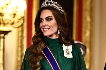Middleton, 44, appeared at the banquet in an emerald-colored Andrew Gn gown, which was presumably chosen as a tribute to the Nigerian national flag. The Duchess's look was completed with her favorite Lover's Knot tiara, a sparkling clutch, and earrings from the jewelry box of the late Elizabeth II. Prince William, 43, like the other men, wore a classic black tailcoat with a white bow tie, according to royal etiquette.