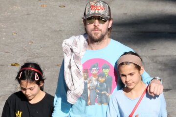 45-year-old Ryan Gosling was photographed by paparazzi with his daughters with Eva Mendes. The actor was photographed with 11-year-old Esmeralda and nine-year-old Amada on their way to a bookstore in Santa Barbara.